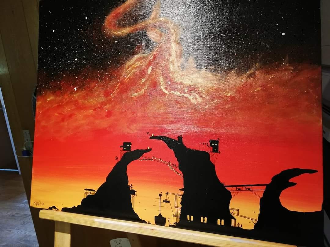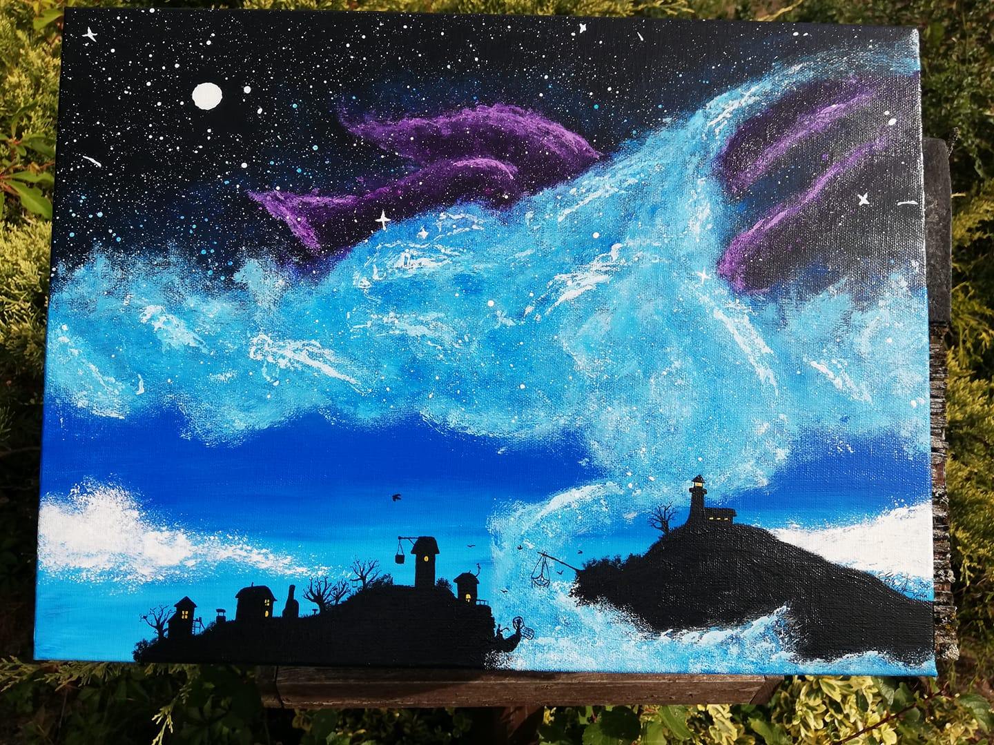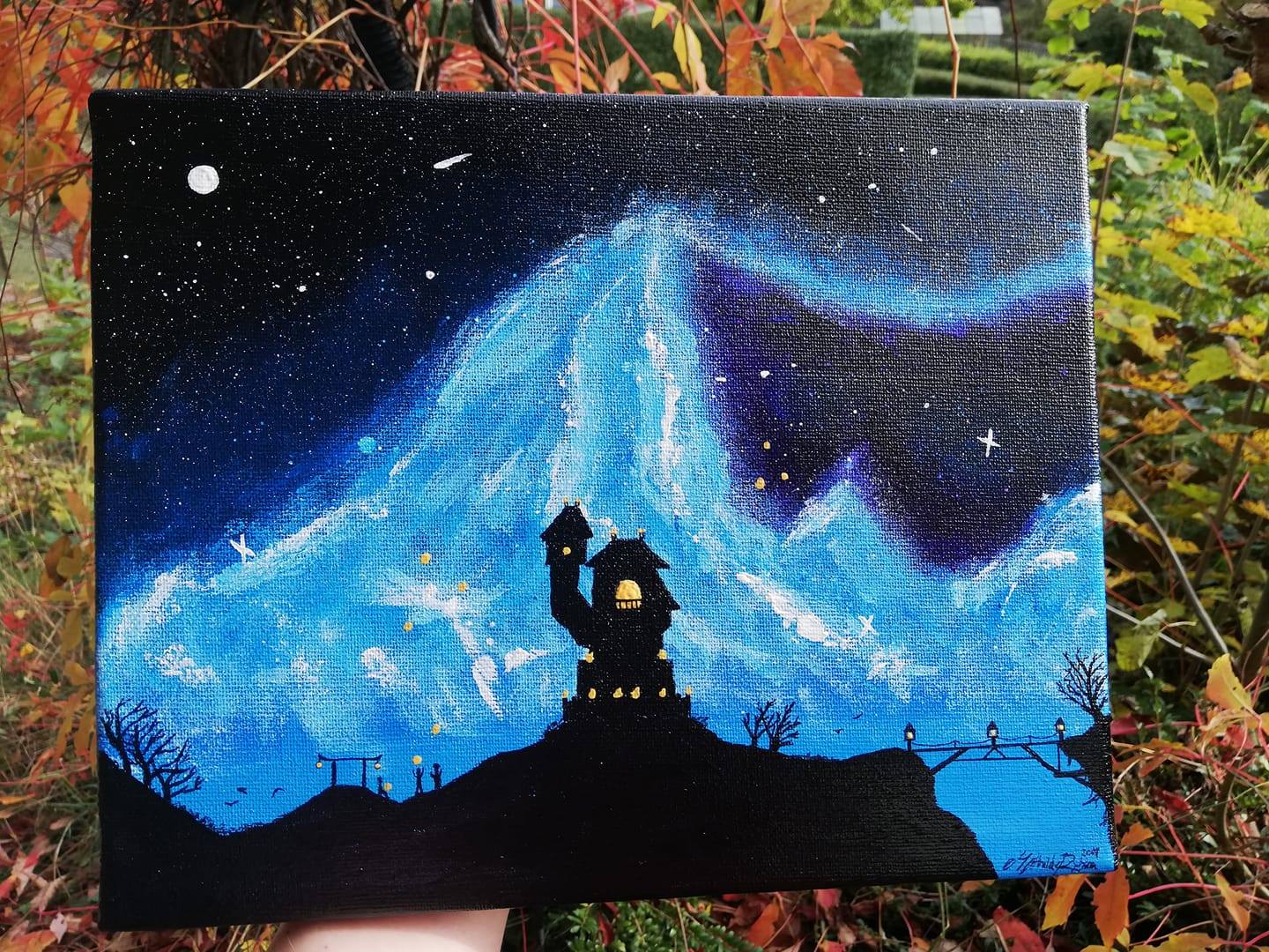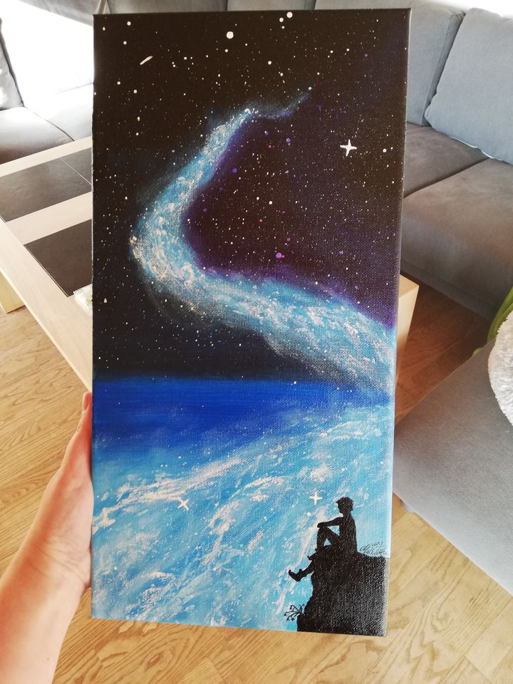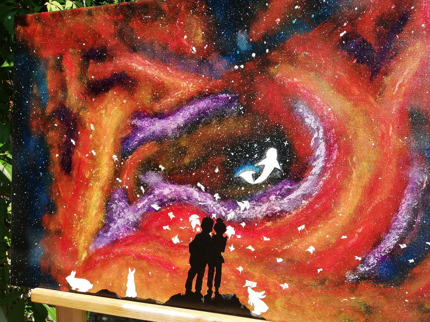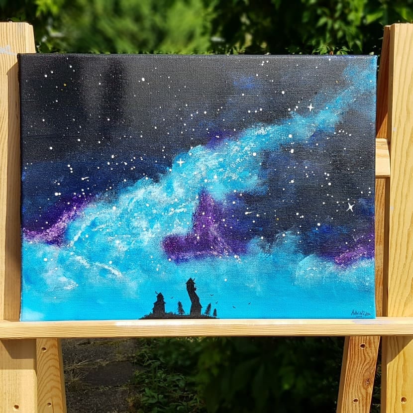 Around summer time I decided to play with acrylic paints. It was here I made my first galaxy painting. I shared it on Facebook and then my jaw dropped. “How much?” a comment said. The painting was sold before I knew it, and so many showed interest and suddenly I had commissions! I spent that summer painting, and having so much fun!